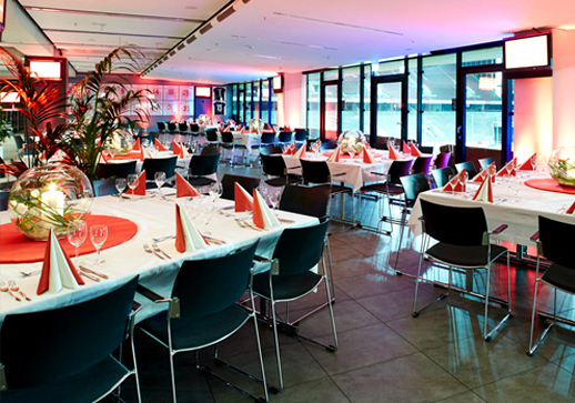 Lichtdurchflutete Eventflächen, große Panoramafenster mit direktem Zugang in den Stadioninnenraum, kleine Breakout Rooms und mobile Wände passen sich jedem Veranstaltungsformat ideal an.